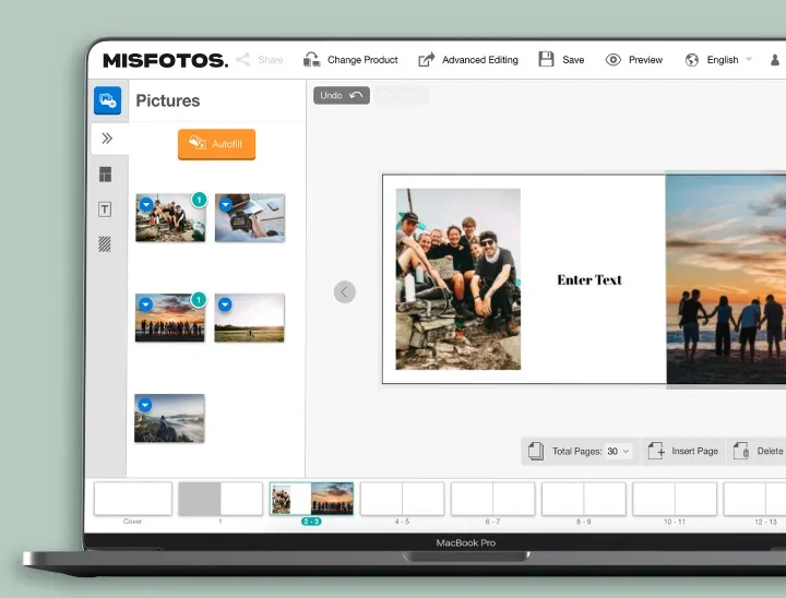 Sin ayuda de ningún programa adicional, sube tus fotos y edita el diseño como quieras.